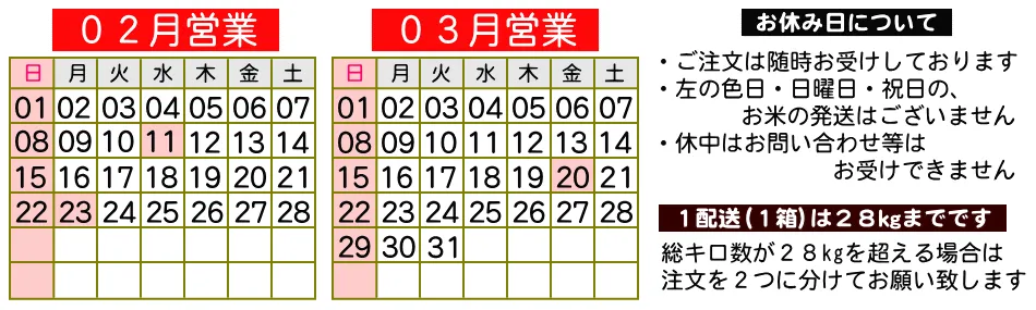 総キロ数が28kgを超える場合は、注文を分けてお願いいたします。